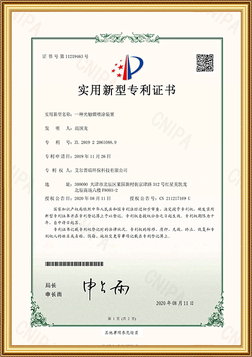 實(shí)用新型專利證書(一種光觸媒噴涂裝置)