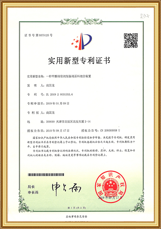 實(shí)用新型專利證書(一種甲醛清除劑的原料混合