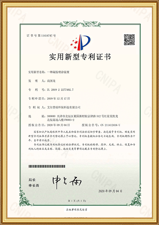 實(shí)用新型專利證書(一種凝膠噴涂裝置)