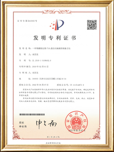 發(fā)明專利證書證書(一種高稿氧化物/Ti02復(fù)合光觸